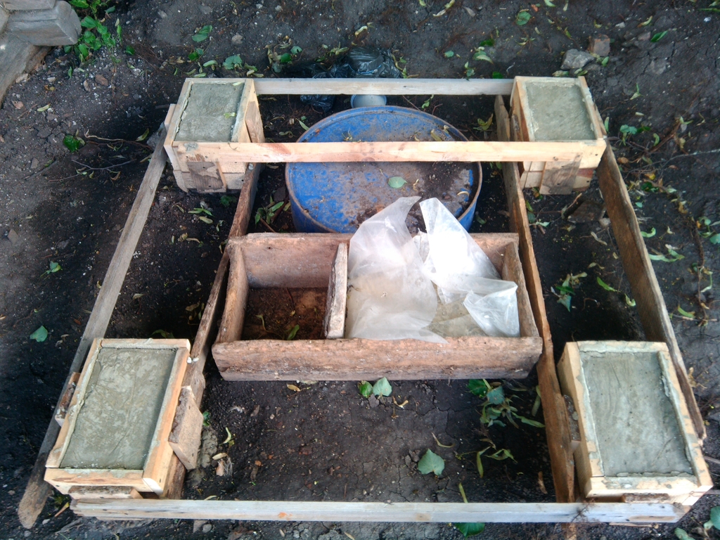 Для прочности и сохранения тепла фундамент укрепляется рубероидом или другим вариантом простилки. Обязательно все детали покройте лаком или защитным составом еще до сборки, это позволит сохранить конструкцию надолго.