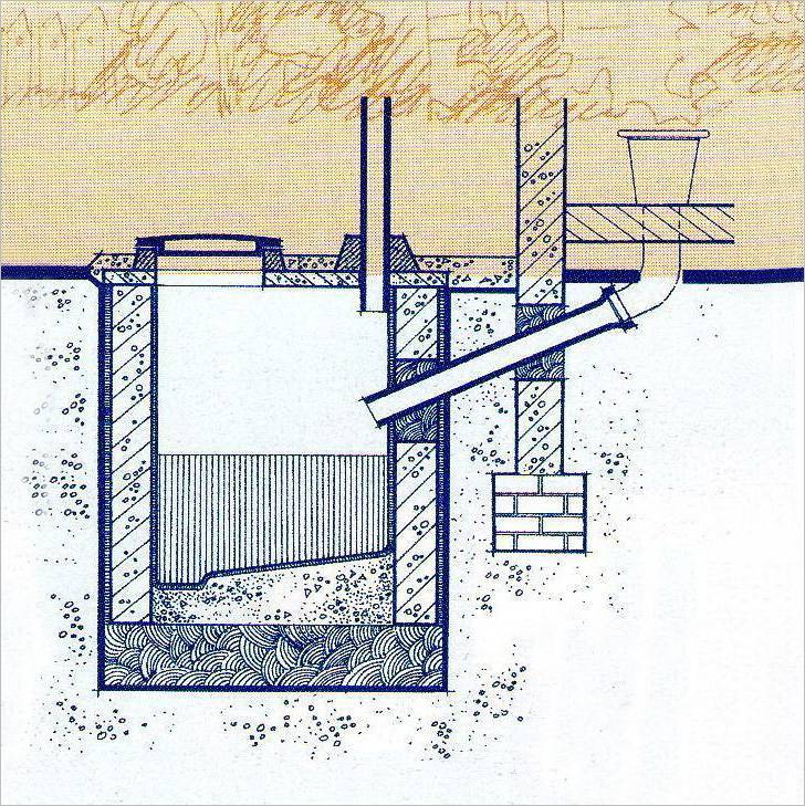 От жилого дома желательно отступить 12 м, особенно, если имеется подвальное помещение или погреб. Выбирая место расположения резервуара туалета, продумывают схему прохождения канализации из дома, если она имеется. Трубопровод к яме туалета лучше проложить по прямой линии без поворотов, что поможет избежать частых засорений.Из дома трубу прокладывают к яме под уклоном, равным 2 о /1 п. м. Здесь важно подумать об оптимальном отдалении. Если яму для туалета выковать далеко от дома, при выдерживании уклона трубопровода ее придется делать слишком глубокую. Уменьшать или увеличивать уклон нельзя. Твердые фракции будут оставаться внутри трубопровода, а стечет только жидкость.