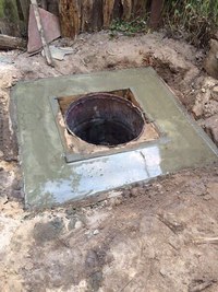 Две ямы: Две круглые ямы глубиной три фута выкапываются одна рядом с другой. При этом стенки ямы имеют сотовую структуру, дно не оштукатурено, земляное. Кирпичи, соединенные в соотношении цементного раствора 1: 6, чаще всего используются для футеровки.Другие местные материалы, такие как камень, деревянные бревна, цементобетонное кольцо, обожженная глина или даже выброшенная бочка из-под каменноугольной смолы, также могут использоваться для облицовки карьера.
