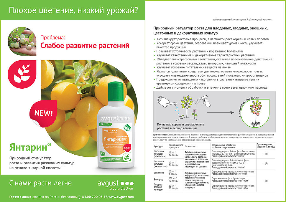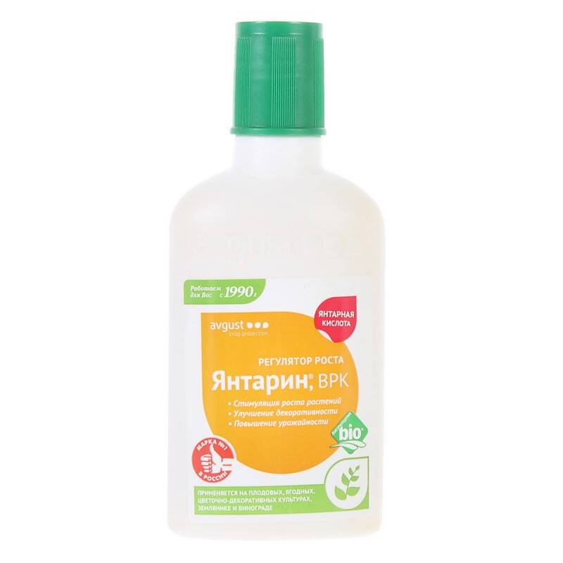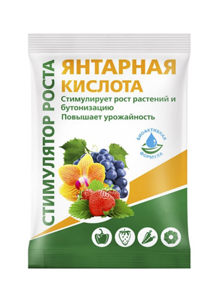 Читайте также: регулятор роста «Янтарин, ВРК» на основе Янтарной кислоты — как применять на даче, для комнатных цветов и орхидеи.