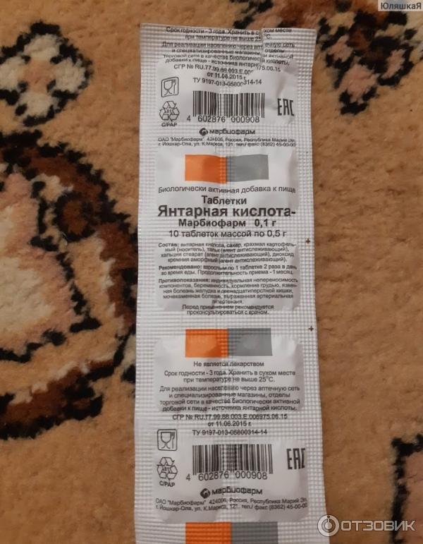 Янтарная кислота таблетки