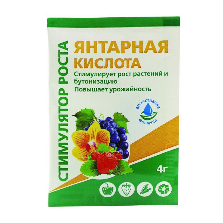 Янтарная кислота широко применяется в качестве стимулятора роста для комнатных растений, а также для их адаптации в стрессовых ситуациях, таких, как пересадка. Также вещество стимулирует процессы образования хлорофилла в растении, и помогает усвоить полезные вещества, содержащиеся в почве. Данное вещество не токсично для человека, и его применение не вызывает сложностей. Преимуществом перед прочими стимуляторами считается доступная цена кислоты и разные формы выпуска.