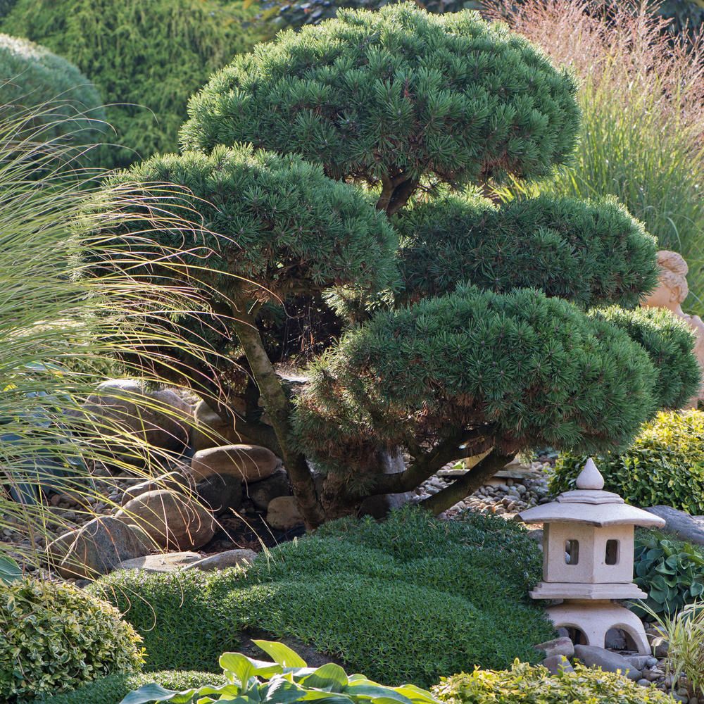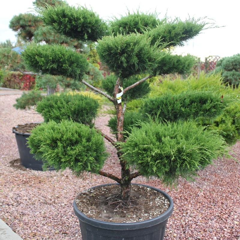 Карликовый японский садовый Можжевельник (древовидная форма) – густое вечнозеленое дерево с сильным центральным воронком, стройной формой и изящно изогнутыми ветвями. Он придает чрезвычайно тонкую и нежную текстуру ландшафтной композиции, которую следует использовать с максимальной эффективностью.