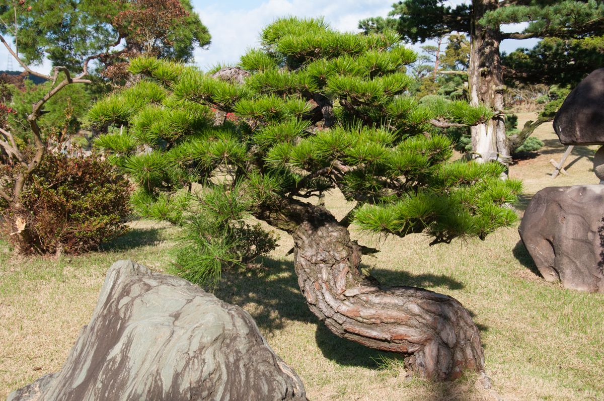 Kaizuka (Кайзука) – невысокое дерево или – чаще куст. Высота взрослого растения 3-4 м, но встречаются экземпляра, достигшие 5-6 м; диаметр у кроны 1,8-2,2 м. Растет быстро; годовой прирост не менее 15-18 см. Скелетные ветки очень длинные, сильно разнящиеся по длине и далеко отстоящие друг от друга. Они неравномерно разрастаются в стороны, сильно ветвятся, но только на концах, отходят от центрального побега под острым углом и направлены вверх. Конца скелетных веток и боковые побеги слегка скрученные, иногда – повисшие.
