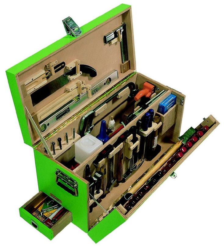 Быстро и качественно соорудить короб под ремонтные приспособления можно, если подобрать подходящую по размерам емкость и оборудовать ее удобными отсеками и ящиками. Конструкция зависит от задуманной идеи. Важно обеспечить герметичность отделений, подобрать материал, который выдержит вес содержимого, оборудовать устройство надежными петлями, крючками, полозьями.
