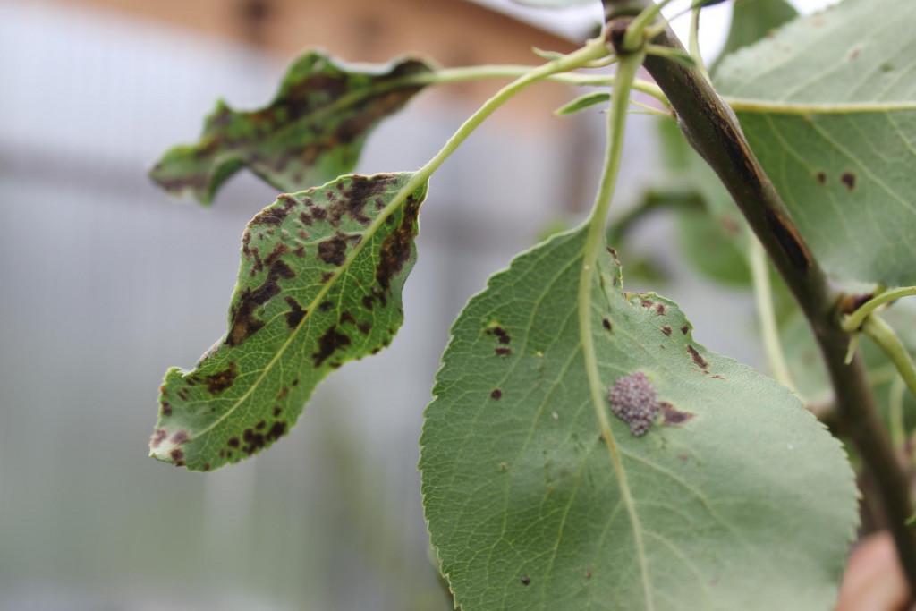 Парша на листьях Фото 2. Парша на плодах