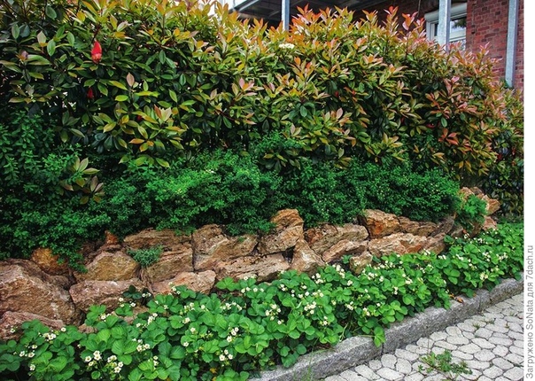 Photinia предлагает широкое покрытие, а также глянцевые листья, которые добавляют богатства вашему открытому пространству. Этот вечнозеленый кустарник часто используют в качестве уединенного растения, как показано ниже в живой изгороди, созданной путем чередования Photinia с Dodonaea. [фото из Uurutia Design ]