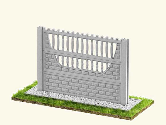 Состоит из секций, которые представляют собой плиты для нанизывания друг на друга и составляющие в итоге общую высоту ограды. По этой причине для реализации защитной функции используют до 4-ех секций, а в случае необходимости декоративного оформления 1-2.