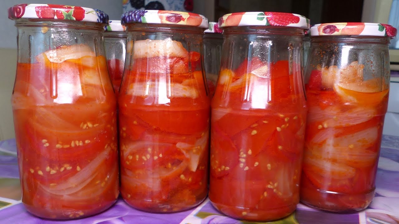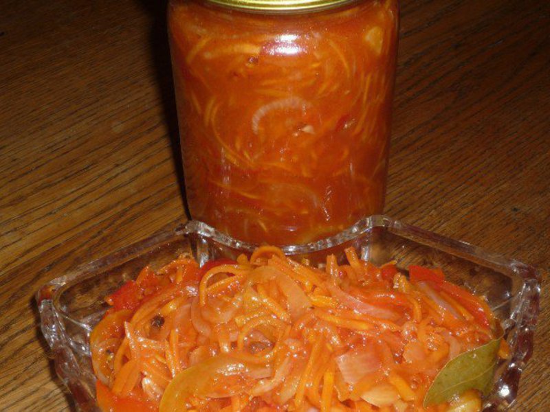 Салат из капусты перца, моркови, помидоров, лука в масле на зиму