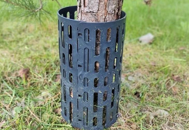 Для защиты стволов молодых деревьев от грызунов можно использовать пластиковые бутылки. Обрежьте у них дно и горлышко, разрежьте вдоль, обхватите штамб молодого дерева и закрепите шпагатом. Основание заглубите в почву. Важно, чтобы ствол молодого дерева был тонким, т.
