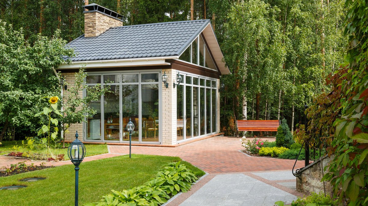 Чтобы полноценно и комфортно отдыхать на свежем воздухе у себя на даче или в коттедже, собственники представленной недвижимости обустраивают специальную пристройку к дому. Она может быть выполнена в разных стилях и конфигурациях.