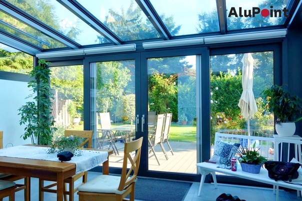 Она проектируется в существующем здании со стороны стенки, выходящей на улицу. Также веранда может быть пристройкой к дому. Её особенностью является то, что от уличного пространства она ограждается стекольным покрытием. Плюс в том, что стекло не будет препятствовать слиянию с природой и наслаждению её видами.