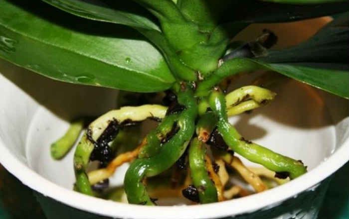 Больше информации о том, как помочь орхидее с чернеющими корнями, вы получите тут.