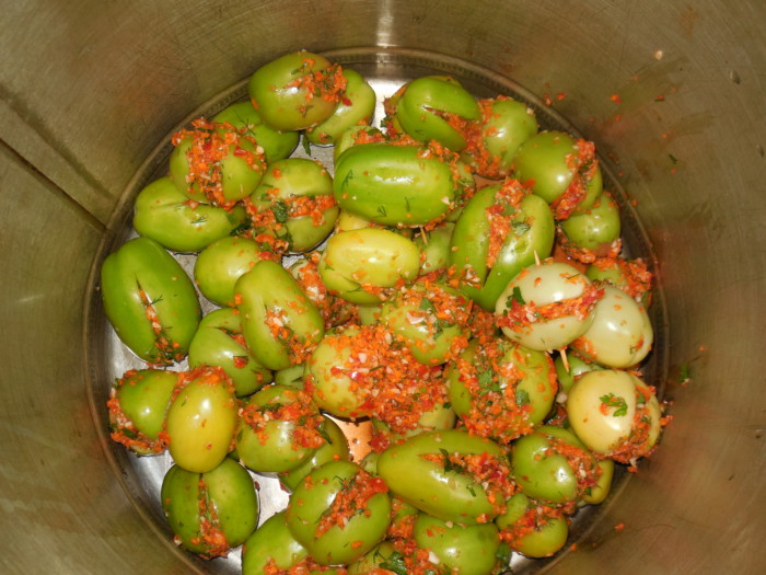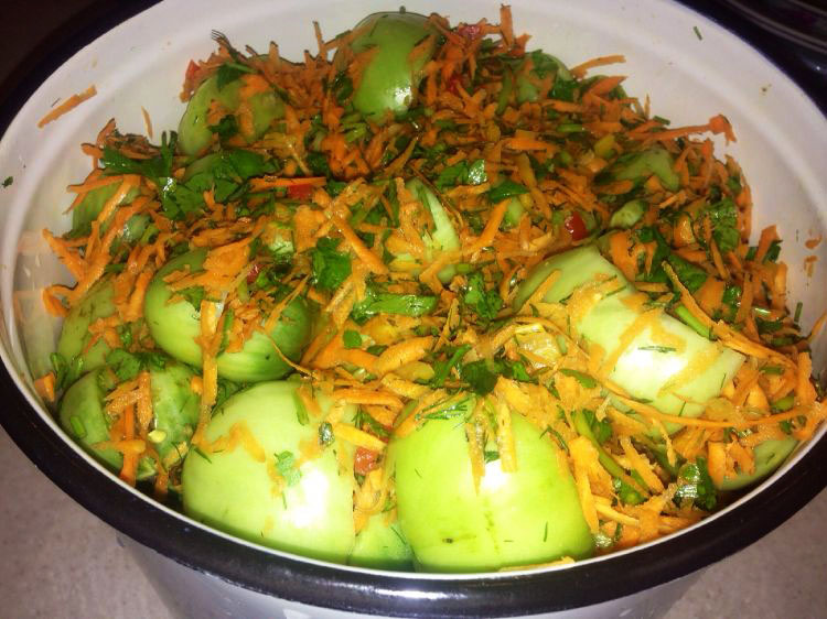 Рецепт засолки зеленых помидоров взят из грузинской кулинарной книги. Помидоры готовятся в собственном соку, без использования отдельного рассола. В результате получается неописуемо вкусная закуска! …далее