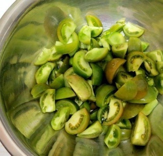 Я также иногда заменяю несколько зеленых помидоров в рецептах консервов, требующих спелых, таких как чатни из помидоров и летних тыкв.