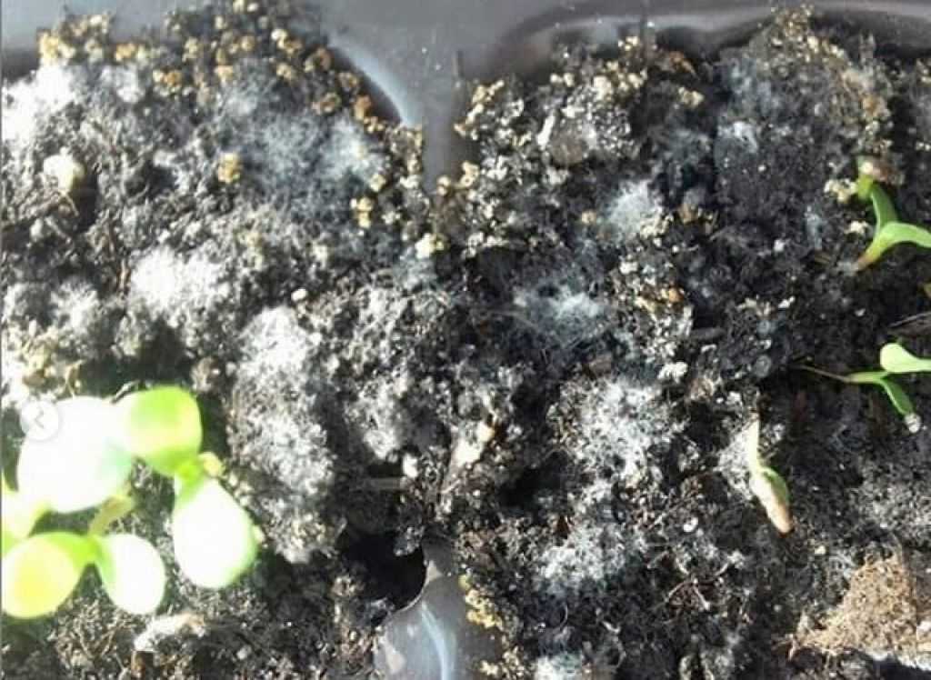 Белая плесень на почве для рассады (источник)Вредна ли плесень или водоросли для рассады?