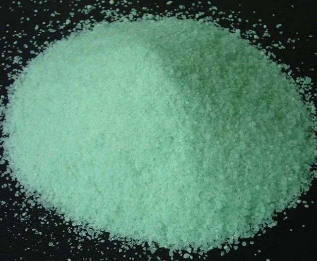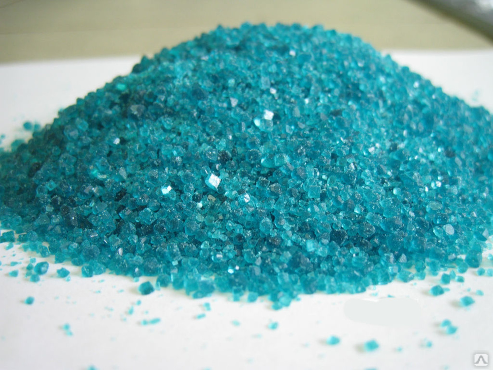 Такой препарат представляет собой порошок или мелкие кристаллы зеленоватого или голубоватого оттенка, иногда бирюзового. Они хорошо растворяются в теплой воде, не имеют запаха. Зачастую предприимчивые дельцы поставляют в продажу некачественный, плохо очищенный по составу препарат, который не прошел сертификацию. Такой препарат бесполезен, а порой даже вреден для садовых культур.