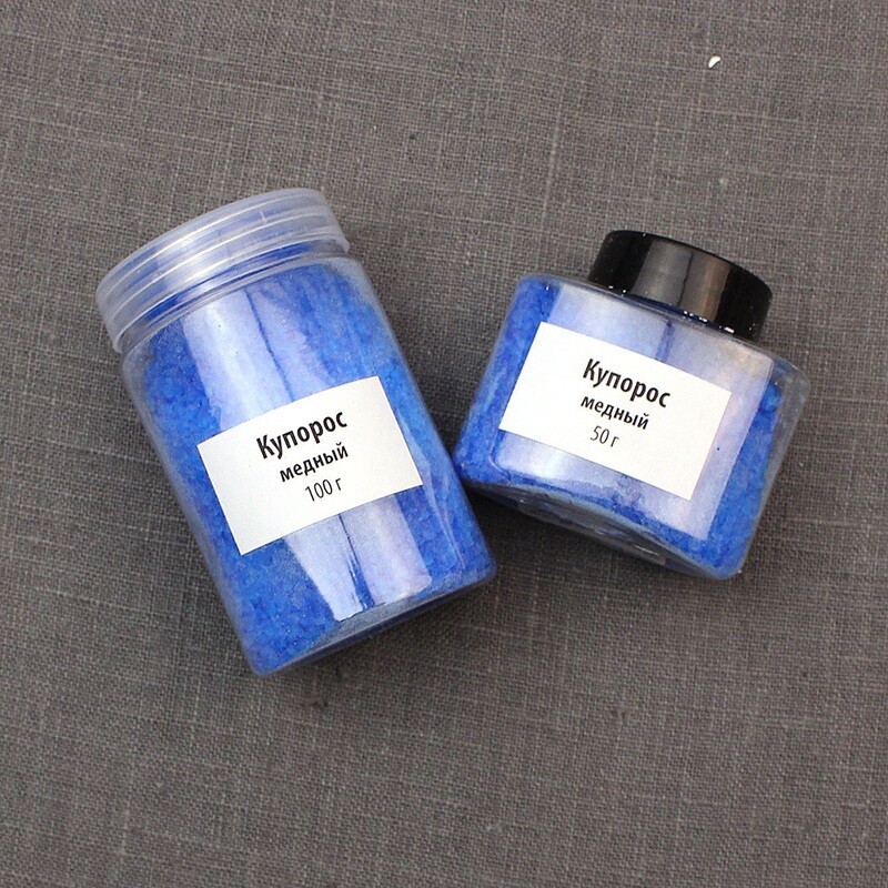 Сернокислая медь или медный купорос представляют собой кристаллы голубого оттенка, которые содержат до 24% меди.