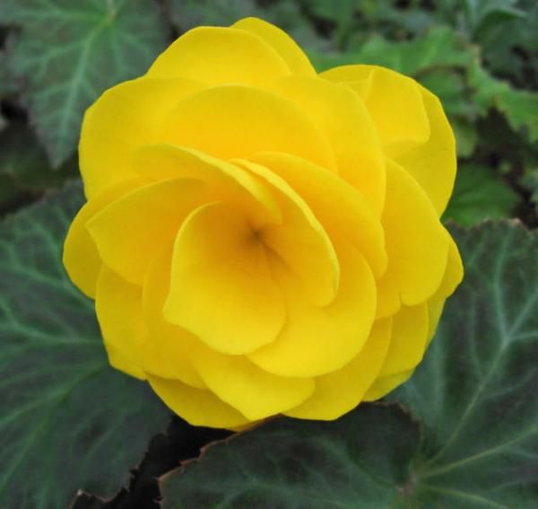 Бегония желтая известна под многими названиями: бегония махровая желтая, бегония клубневая желтая – только самые распространенные из них и опираются на внешний вид и структуру корневой системы растения. В общем, желтая бегония представляет собой полукустарное растение высотой до 45-50 см с лежачими побегами. Листья достигают длины до 20 см, ширины – до 15 см. Диаметр цветков до 4 см, однако, кажется, что гораздо больше, так как цветки собраны в крупные соцветия. Цветы окрашены в оранжево-желтый цвет, который и дал название виду.