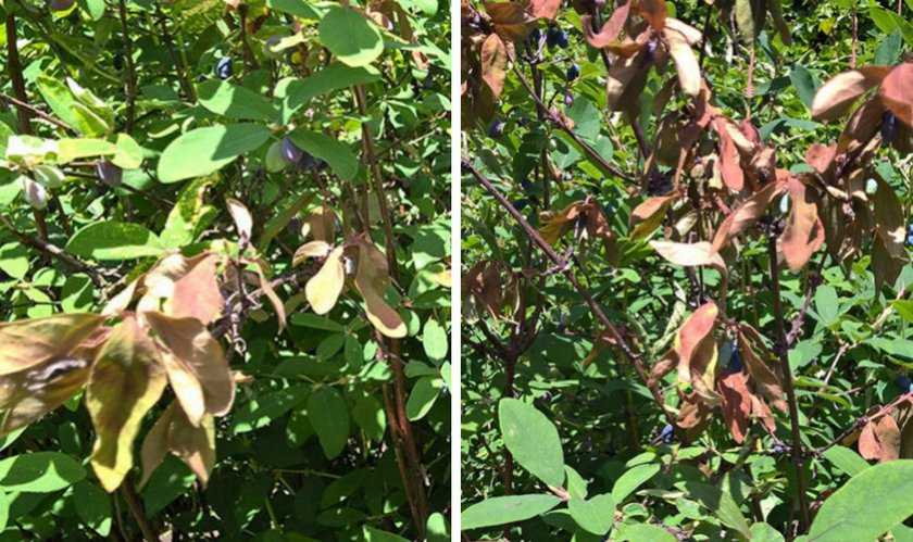 - Резкие изменения погоды. Если выдалось холодное и дождливое лето, жимолости не хватит солнечного света и тепла. Из-за этого нарушаются обменные процессы, что сказывается не только на росте, но и на урожайности.