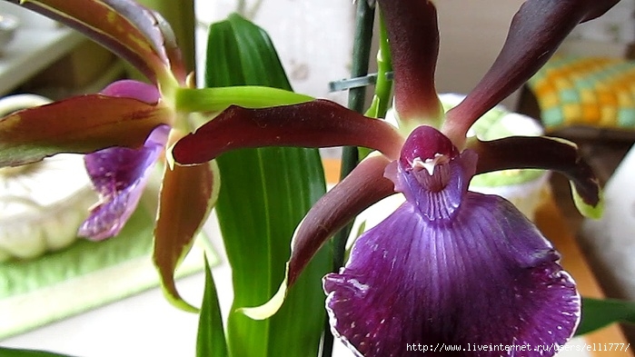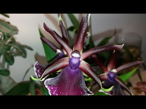- Zygopetalum maxillare: Аромат Bloom с нотками шоколада. Лепестки зеленые и бордовые с пурпурно-лиловой ребристой губой.