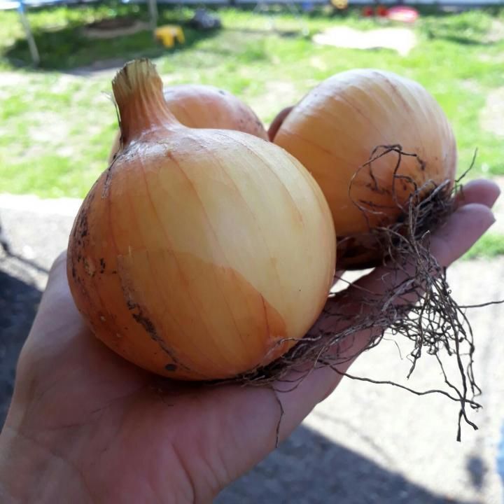 Фото лука Центурион из отзыва огородницыЕще одной замечательной особенностью лука Центурион является устойчивость к болезням и к стрелкованию. Применять его можно в любых целях. Благодаря повышенной упругости сочных пластин, корнеплоды этого сорта отлично переносят длительное хранение. Так, при хранении в обычных условиях можно рассчитывать, что лук не испортиться в течении 6 месяцев, а в в специализированных помещениях для хранения — до нового урожая.