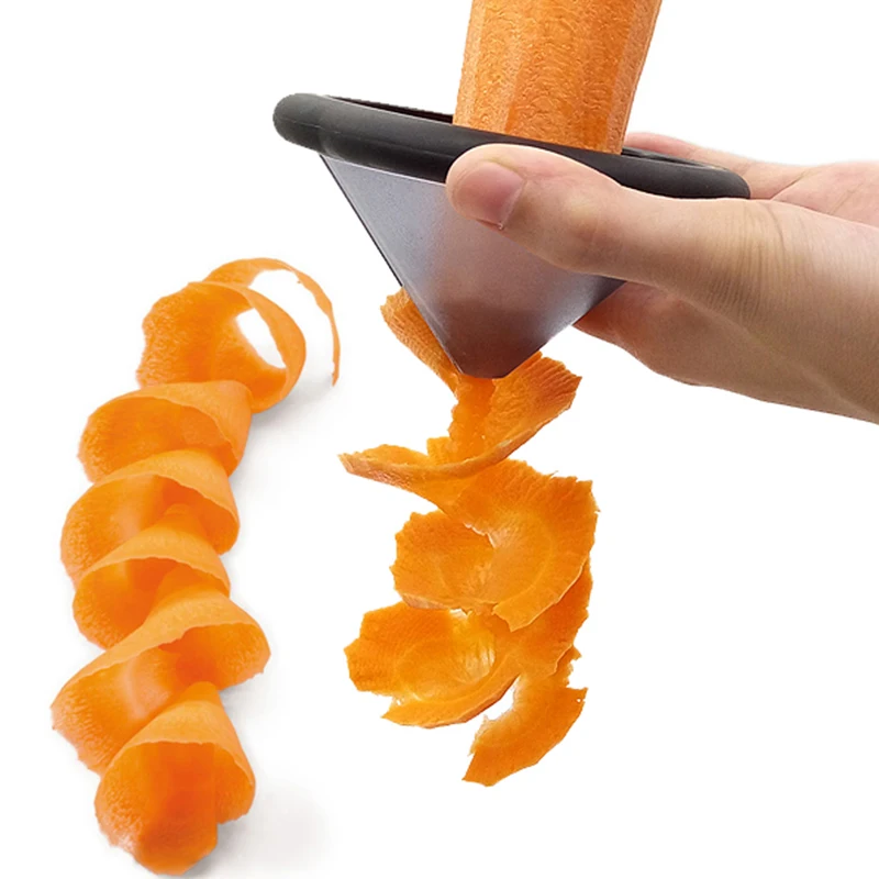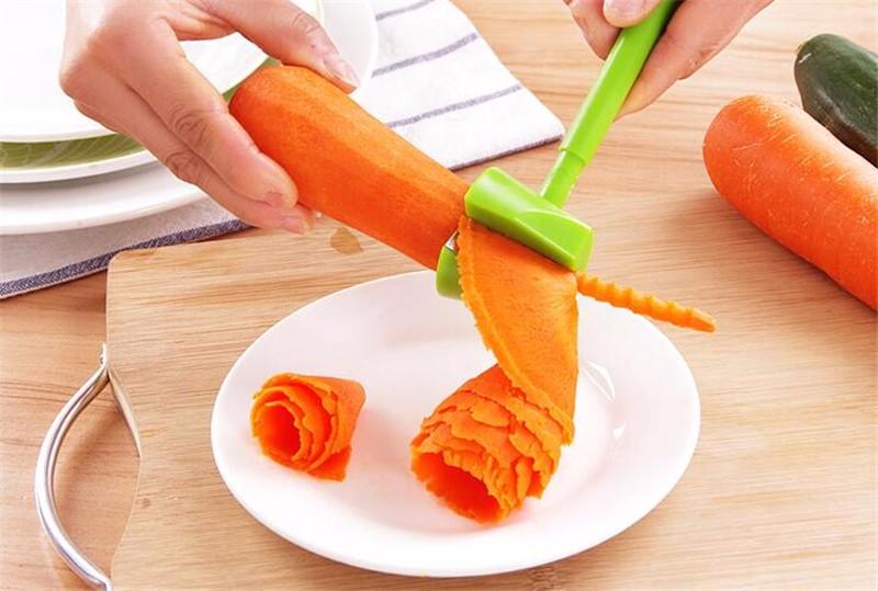 С помощью этой скобы вырезаем вдоль морковки, на равном удалении друг от друга, выемки.
