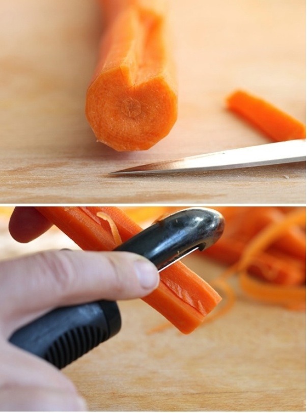 Лучше всего брать средние и крупные морковины — с ними работать удобнее. Итак: