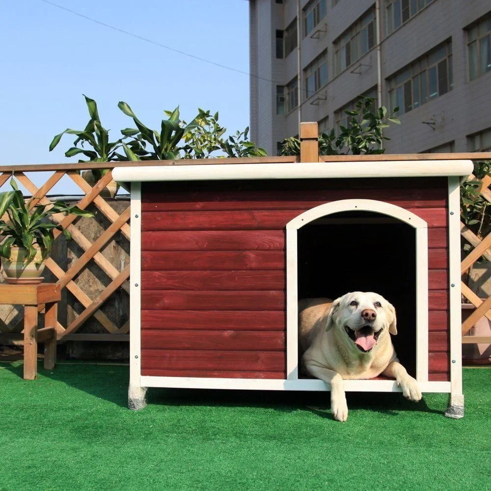 Односкатная крыша с уклоном — наиболее предпочтительный вариант для собачьих будок. В домиках с двухскатными крышами тепло удерживается намного хуже.