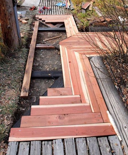 ΠΡΠΈΠ³ΠΈΠ½Π°Π»ΡΠ½ΡΡ ΠΈ ΠΎΡΠ΅Π½Ρ Π½Π΅ΠΎΠ±ΡΡΠ½ΡΡ ΡΠ°Π΄ΠΎΠ²ΡΡ Π΄ΠΎΡΠΎΠΆΠΊΡ ΠΌΠΎΠΆΠ½ΠΎ ΡΠ΄Π΅Π»Π°ΡΡ ΠΈΠ· ΡΠΏΠΈΠ»ΠΎΠ² Π΄Π΅ΡΠ΅Π²Π°. ΠΡΠ΅Π²Π½ΡΡΠΊΠΈ ΡΠΊΠ»Π°Π΄ΡΠ²Π°ΡΡ Π² ΠΏΡΠΎΠΈΠ·Π²ΠΎΠ»ΡΠ½ΠΎΠΌ ΠΏΠΎΡΡΠ΄ΠΊΠ΅, ΡΠ΅ΡΠ΅Π΄ΡΡ ΠΏΠ΅Π½ΡΠΊΠΈ ΡΠ°Π·Π½ΠΎΠ³ΠΎ Π΄ΠΈΠ°ΠΌΠ΅ΡΡΠ°. Π Ρ ΠΎΠ΄ ΠΏΠΎΠΉΠ΄ΡΡ ΡΠ°ΠΊΠΆΠ΅ ΠΈ ΡΠΎΠ»ΡΡΡΠ΅ Π²Π΅ΡΠΊΠΈ, ΠΊΠΎΡΠΎΡΡΠΌΠΈ ΠΌΠΎΠΆΠ½ΠΎ Π·Π°ΠΏΠΎΠ»Π½ΠΈΡΡ ΠΏΡΡΡΠΎΡΡ ΠΌΠ΅ΠΆΠ΄Ρ ΠΊΡΡΠΏΠ½ΡΠΌΠΈ ΡΠ°ΡΡΡΠΌΠΈ.