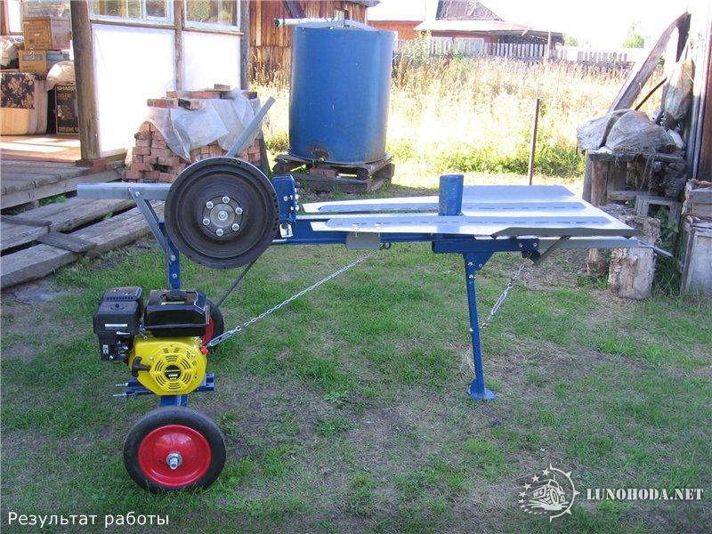 В соответствии с проектом сваривается рама. Если есть необходимость в перемещении агрегата, то нужно позаботиться о надежном шасси и возможности его блокировки на время колки дров.