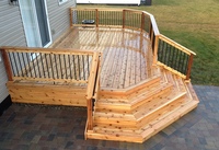 Крыльцо также может иметь боковые стенки, выполненные как из массивной доски, так и из ее элементов или фанеры. Можно купить уже готовые перила или балясины, которыми можно украсить не только крыльцо, но и лестницу.