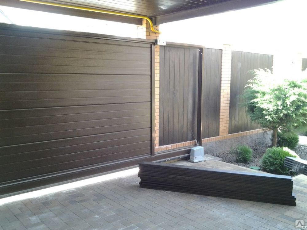 Деревянные ворота очень красиво сморятся, но у них немного более сложная система установки, чем у металлических. Профнастил крепится сплошным листом, при помощи шурупов, в то время как деревянные доски нужно выравнивать одна к одной.
